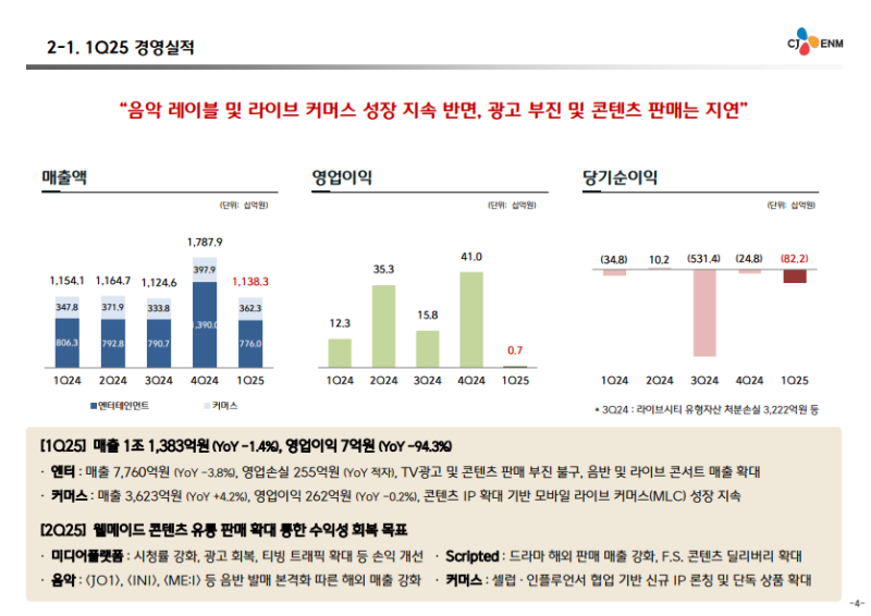 · 2025년 2분기 라이브 콘서트 및 음반 활동 확대, 매출 및 수익성 개선 병행