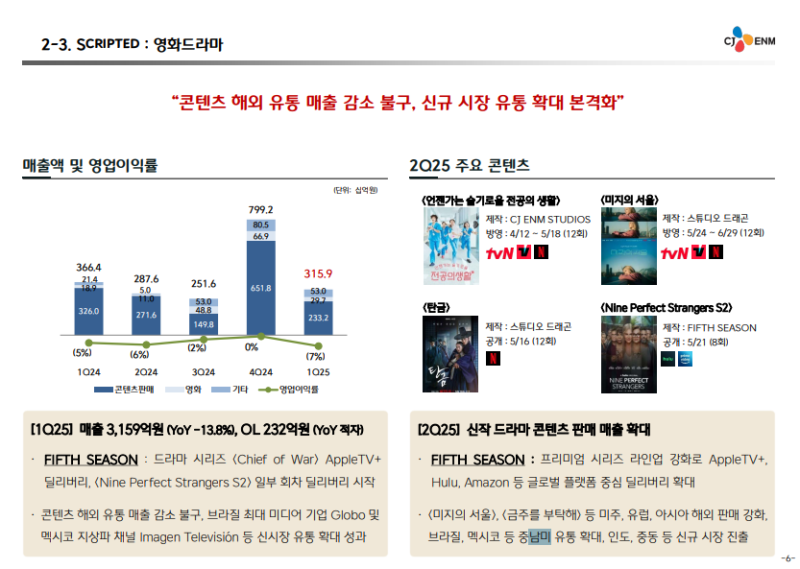 · 2025년 2분기 콘텐츠 IP 확대 및 맞춤형 큐레이션 전략 강화, 추가적인 수익성 제고 방안 추진