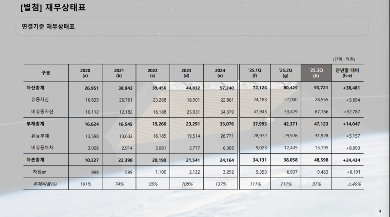 • 2024년 말 대비 자산은 3조 8,481억 원 증가한 9조 5,721억 원