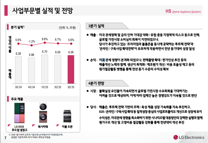 • 성수기 대응을 위한 선제적 물류 활동 영향으로 전분기 대비 매출은 증가했으나, TV를 포함한 하드웨어 수요 정체와 경쟁 심화로 전년 대비 감소