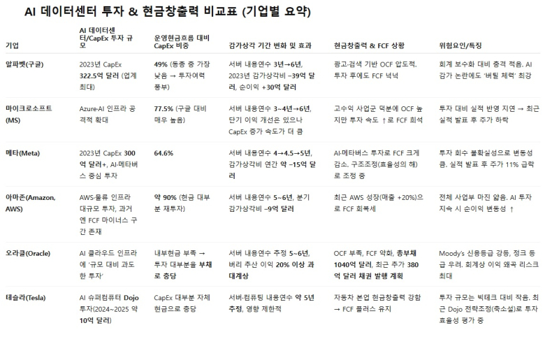 ◆주요 기업별 분석: AI 데이터센터 투자 현황과 현금창출력