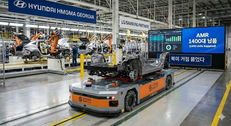 21일 회사와 금융투자업계에 따르면 시스콘로보틱스는 현대차그룹의 미국 조지아주 전기차 전용 공장(HMGMA) 차체 라인에 100여 대 규모의 자율이동로봇(AMR)과 무인운반로봇(AGV)을 공급했다. 이는 현대차가 미래 모빌리티 생산의 허브로 삼고 있는 핵심 기지에 국산 로봇 기술이 대거 투입됐다는 점에서 의미가 크다.