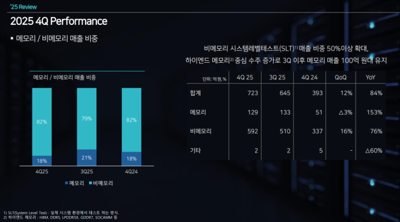 • 시스템 레벨 테스트(SLT) 비중이 양산 매출의 50%를 초과하며 고부가·반복 수주 구조로 전환