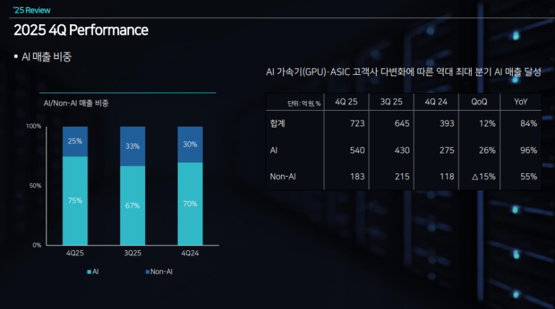 • 2026년 AI 매출 비중 70% 이상은 기존 AI 고객사의 양산 확정 물량과 반복 주문만 반영