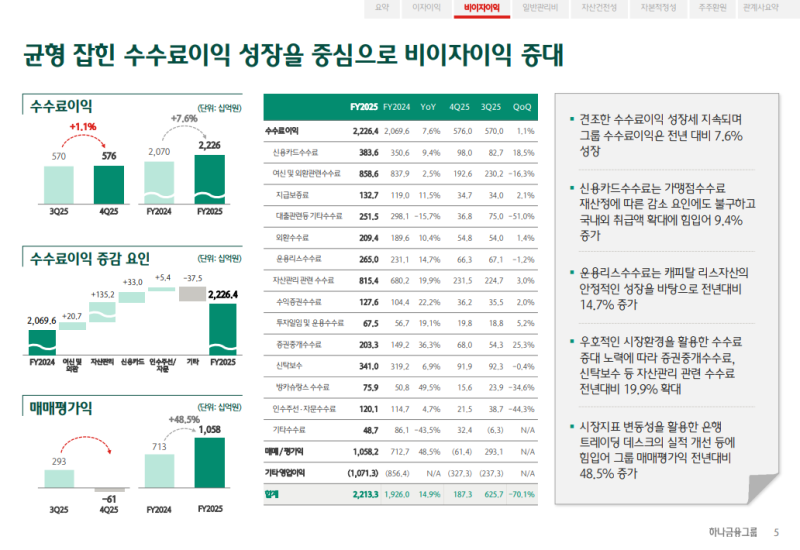 • 2025년 연간 그룹 수수료이익은 2조 2,264억 원(YoY +7.6%)