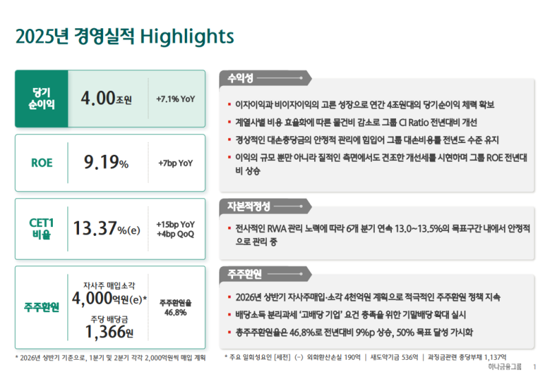 • 2025년 연간 당기순이익은 4조 29억 원(YoY +7.1%)