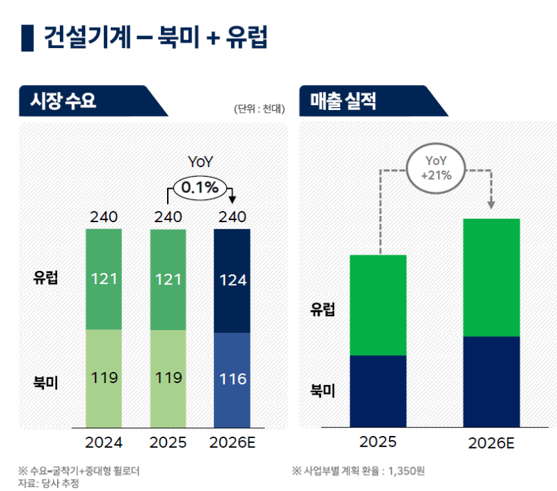 • 북미 : CONEXPO 2026 신모델 런칭 (Heavy 5종 및 CTL) ADT 등 대형 장비 비중 확대, 대형 딜러 기반 판매 확대와 토탈 커버리지 확대