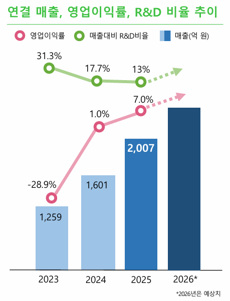 • 2025년 연결 기준 매출액 2,007억 원, 영업이익 141억원 기록