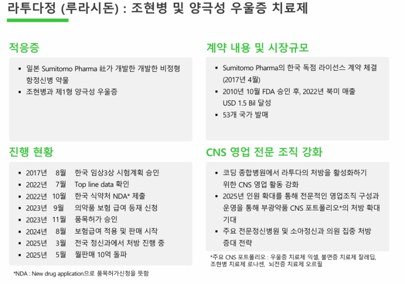 • 항정신병 신약 라투다의 신속한 시장 안착과 매출 실현에 크게 기여
