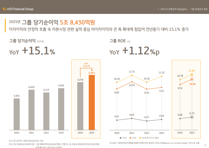 • 2025년 연간 당기순이익 5조 8,430억 원