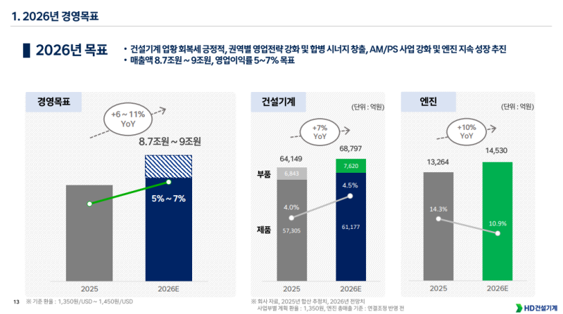 • 엔진 2025년 매출 1조 3,264억 원 대비 +10% 성장한 1조 4,530억 원 목표