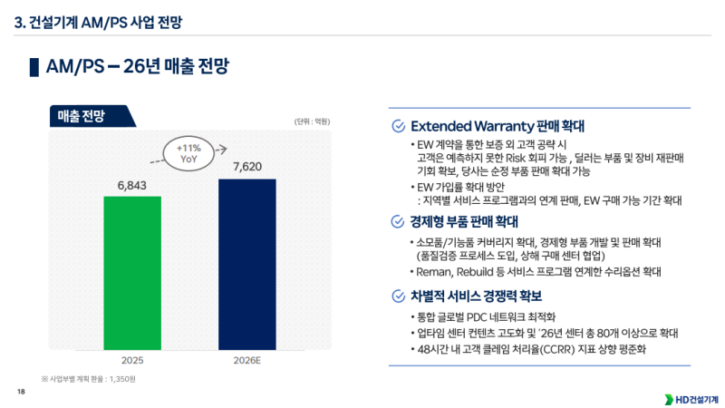 • 건설기계 2026년 부품 매출 7,620억 원, 전년 대비 +11.3% 성장 목표