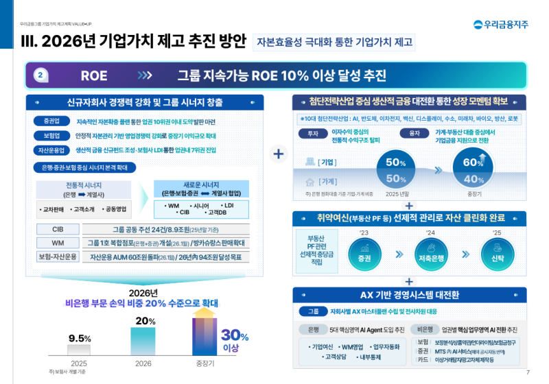 • 2026년 비은행 손익 비중 20% 확대, 중장기 30% 이상 목표 제시