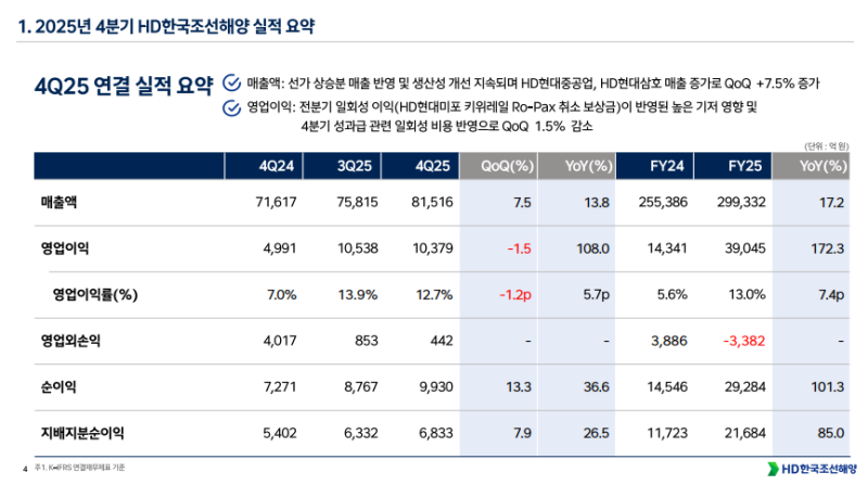 4Q25 HD한국조선해양 연결 실적