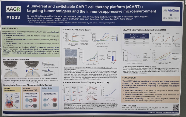 앱클론, AACR 2026서 차세대 고형암 'zCAR-T'·이중항체 'AM109' 항암 효능 입증